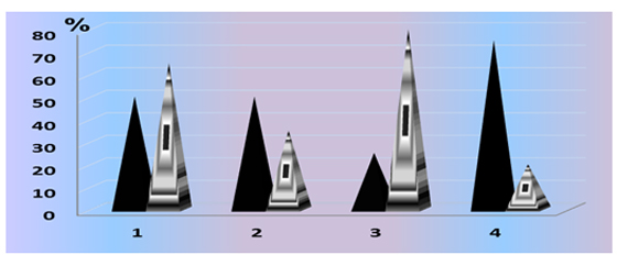 Փորձնական խմբում, ի տարբերություն ստուգիչի, փոփոխու-թյուններն ավելի թույլ են արտահայտված եղել: Նախաքննական շրջանում ԿԱՀ օգտագործած խմբի աշակերտների մոտ դիտվել է ԼՑ-ի հավաստի բարձրացում` 21,74%: Հետքննական շրջանում, ի տարբերություն ստուգիչ խմբի, ԼՑ-ի մեծությունն իջել է նախաքննականի համեմատ և ելակետից բարձր է մնացել 10,95% (նկ.3):