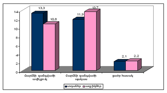 Ծանուցում. * Տարբերությունը սեռերի ՄՀ- ցուցանիշների միջև հավաստի է (P‹0.05)