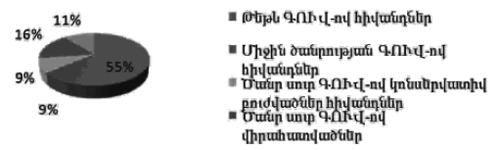- Առանձնացված ծանր, սուր ԳՈՒՎ-ով առավելապես տառապում են արական սեռի ներկայացուցիչներր աշխատունակ տարիքում` 21-60տ հասակում, իսկ հիվանդության ավելի ուշ շրջանի ծանր հետեանքներով 60-ից ավելի տարիքի հասա- կում: