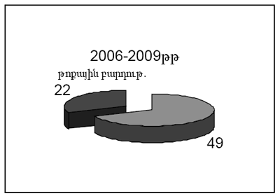 հարված սուր ե բութ գործիքներով` 26, հրազենային վնասվածք` 5: Համակցված վնասվածքները գնահատվել են ISS սանդղակով, որի միջին ցուցանիշր կազմել է 42,12+5,8, ֆիզիոլոգիական վիճակի գնահատումը APACHE II սանդղակով, որի միջին ցուցանիշը կազմել է 18,6+6,0, ինչր խոսում է այն մասին, որ վնասվածքներր եղել են հիմնականում ծանր աստի-ճանի: Մահացածների թիվր եղել են 28, որոնք կազմել են 22.7%-ը: