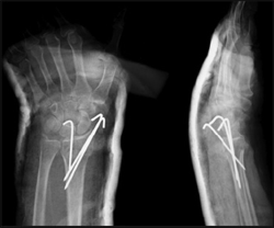 Ճաճանչոսկրի դիստալ մետաէպիֆիզի կոտրվածքների բուժումը միջմաշկային անցկացված շյուղերով