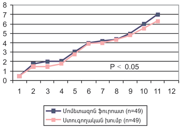 Նկար 5. 3-9 տարեկան երեխաների աճի գնահատում` մեկ տարի մոմետազոն ֆուրոատ օգտագործելուց հետո