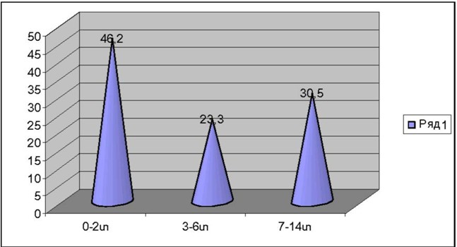 Նկար 3. ՍԱՎ-ով հիվանդ երեխաների տարիքային կազմը 1977-2006թթ.