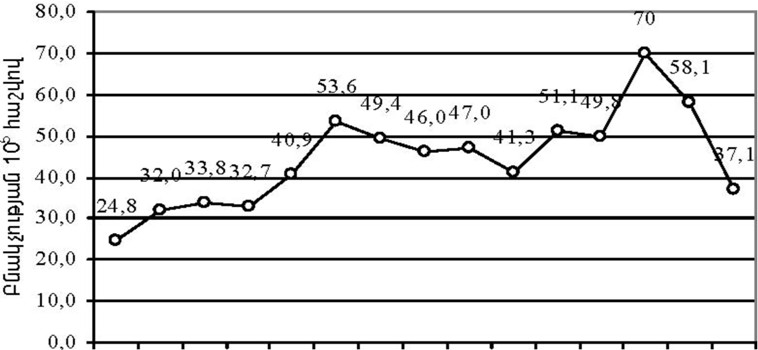 - Ողջ մեծահասակ բնակչության հիվանդացության ցուցանիշը 105 հաշվով (գրաֆիկ 5)