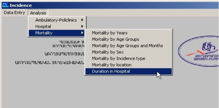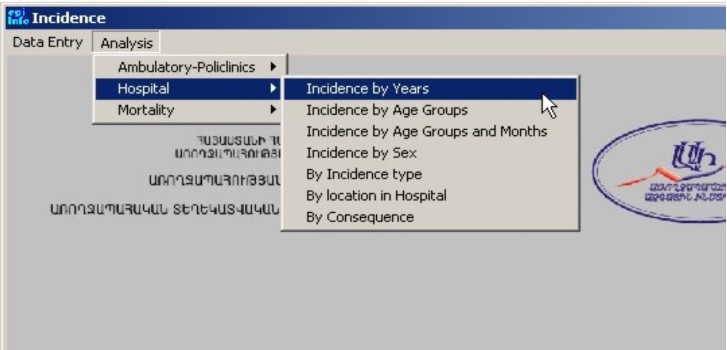 Նկար 7-ում ներկայացված են տվյալների վերլուծության տարբեր տարբերակներ` նկարներ, աղյուսակներ և այլն: Քարտեզագրումը թույլ է տալիս իրականացնել տվյալների համաճարակաբանական քարտեզագրում, տեղադրել դրանք հանրապետության քարտեզում և վերլուծել` հայտնաբերելով այն օրինաչափությունները որոնք բնորոշ են ամբողջ հանրապետության կամ առանձին մարզերի համար:
