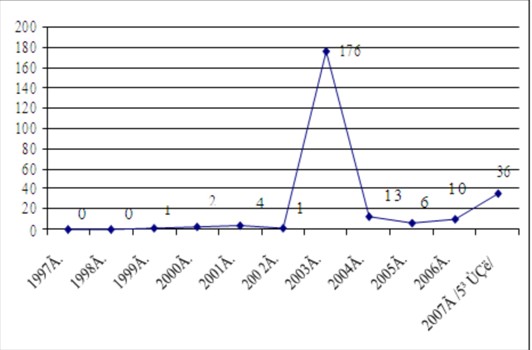 Նկար 1. Տուլարեմիա հիվանդության դեպքերի շարժընթացը 1997-2007թթ ընթացքում