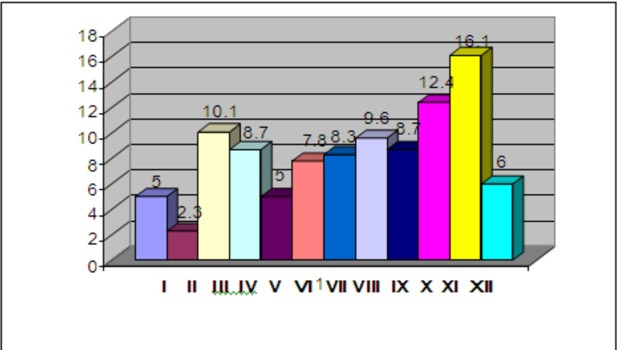 Իրականացվել է ՃՏՏ-ի արդյունքում հոսպիտալացման դեպքերի բաշխվածության վերլուծություն` ըստ տարվա ամիսների: